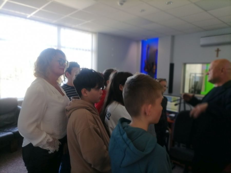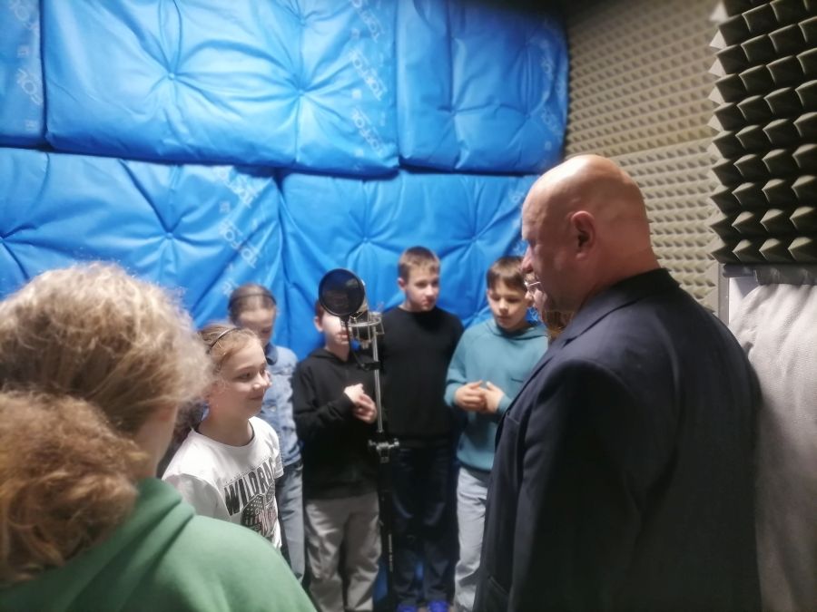 W dniu 4 kwietnia br. uczniowie klasy piątej pod opieką szkolnego doradcy zawodowego- pani Joanny Nosal oraz pani dyrektor – Iwony Jamro wyruszyli w podróż po świecie zawodów. Tym razem uczestniczyli w warsztatach dziennikarskich w Regionalnej Telewizji Gorlickiej. Przybyłych przywitał gospodarz telewizji pan Maciej Trybus. Na początku wizyty opowiedział młodzieży o działalności gorlickiej stacji telewizyjnej, wskazał na jej szeroki zasięg i popularność, wysokie miejsce w rankingu. Na uwagę zasługuje fakt, że jest to jedna z niewielu tak nowocześnie wyposażonych stacji telewizyjnych w Polsce. Pan Trybus zaprezentował studio telewizyjne, miejsce nagrań oraz ,,serce telewizji", czyli reżyserkę. W przystępny a zarazem ciekawy dla uczniów sposób mówił o tym, jak powstają nagrania. Wskazał ścieżkę edukacyjną, która umożliwia znalezienie pracy w telewizji. Opowiedział o cechach, kompetencjach, umiejętnościach ludzi pracujących w tej branży. Nie zabrakło też ciekawego przykładu -filmiku, który ukazał kreatywność ucznia gorlickiej szkoły ponadpodstawowej, dla którego przygoda z telewizją rozpoczęła się od filmu z klockami playmobil. W drugiej części spotkania młodzież mogła spróbować swoich sił, wchodząc w rolę dziennikarzy prowadzących wywiad oraz prezenterów telewizyjnych. Zajęcia warsztatowe okazały się strzałem w dziesiątkę, wielu z naszych wychowanków pokazało, na co tak naprawdę ich stać. Z niezwykła swobodą, wyczuciem, ale i intuicją, w profesjonalny sposób stanęli przed kamerami, zachowując naturalność. Zajęcia warsztatowe dostarczyły młodzieży informacji na temat świata pracy i zawodów, ale przede wszystkim stanowiły okazję, by mogli odkryć własne zasoby: umiejętności, zainteresowania i predyspozycje. Pozwoliły również kształcić kompetencje językowe. Być może wizyta w RTVG stanie się dla niektórych drogowskazem do sukcesu edukacyjno-zawodowego.