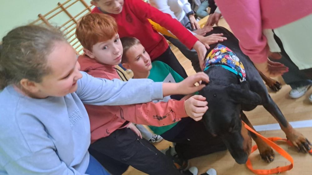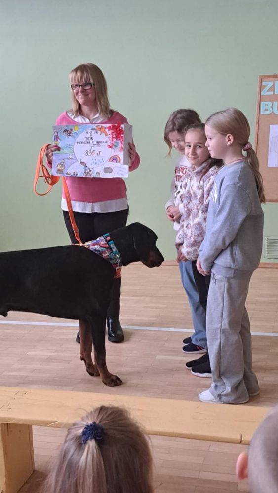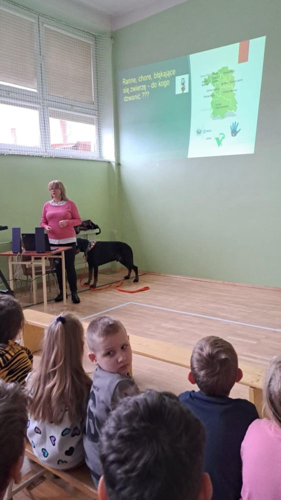 Po raz kolejny przeprowadziliśmy akcję pomocy dla zwierząt "Zbiórka dla Burusia i Burka". Klasa III zorganizowała w dniu 27 listopada sprzedaż popcornu w szkole, z której udało się zebrać niemałą kwotę 835 złotych. Pozostali uczniowie chętnie włączyli się zbiórkę funduszy, karmy, środków czystości i zabawek na rzecz zwierząt z fundacji "PSYstań" w Gorlicach. Zebrane fundusze i środki materialne przekazaliśmy prezes fundacji, pani Katarzynie Kosińskiej, która przybyła do naszej szkoły 13 grudnia wraz ze swoim pięknym pieskiem Vito. Podczas spotkania z panią Kasią uczniowie dowiedzieli się, w jaki sposób karmić zwierzęta domowe i te dziko żyjące. Uczniowie mieli okazję zdobyć informację na temat działalności fundacji poprzez obejrzenie ciekawej prezentacji. Największą radość sprawiła dzieciom możliwość pomocy naszym ,,braciom mniejszym". Dziękujemy wszystkim, którzy tak ochoczo włączyli się w akcję.
