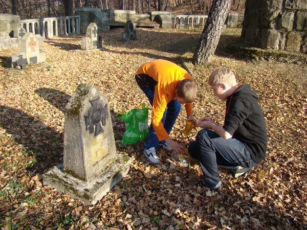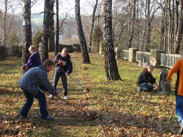 Porządkowanie cmentarza wosjkowego przed świętem Wszystkich Świętych