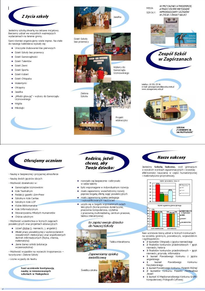 Folder promujący Zespól Szkół w Zagórzanach