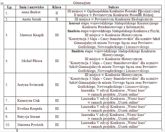 Niech myśl Marii Dąbrowskiej będzie klamrą spinającą miniony rok szkolny. Poniżej zamieszczamy zestawienie danych, które dają się wyrazić liczbami: