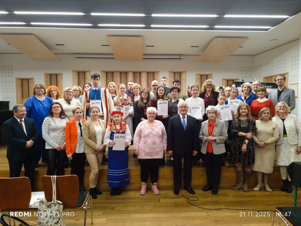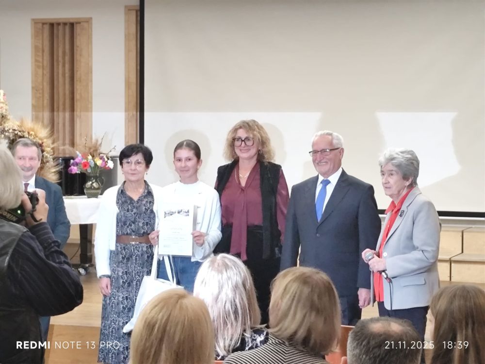 Bardzo szczęśliwy okazał się dla nas piątek 21 listopada br. Maja Bukowska z kl. VI została laureatką I miejsca, a Weronika Uszko z kl. V odebrała wyróżnienie. W auli Zespołu Państwowych Szkół Muzycznych odbył się finał konkursu powiatowego "Znam Moje Miasto, Znam Ziemię Gorlicką". W XXXI edycji Stowarzyszenie Miłośników Ziemi Gorlickiej zaproponowało uczniom temat: "Jakie tradycje ludowe kultywowane są do dziś na Ziemi Gorlickiej?" Weronika w etapie międzyszkolnym otrzymała wyróżnienie za pracę "Czerwone korale" poświęconą strażniczkom ludowych obrzędów, czyli członkiniom KGW. Maja w finale przedstawiła własny projekt "Zeby mamuny nie miały do chołpy przystympu." Wierzbowymi witkami otworzyła przed publicznością drzwi do dawnego świata tradycji i obrzędów związanych z przygotowaniem palmy wielkanocnej. Wykorzystała zdjęcia z rodzinnego albumu, własnoręcznie wykonane kwiaty z krepiny. Występ zakończyła piosenką. Jury doceniło oryginalność ujęcia tematu, autentyczność przekazu, piękny język wypowiedzi i swobodę sceniczną okraszoną czarującym uśmiechem. Dziewczyny odebrały dyplomy i cenne nagrody. Gratulujemy dziewczynom talentów, kreatywności i odwagi w podejmowaniu wyzwań. Dziękujemy za piękną promocję szkoły.